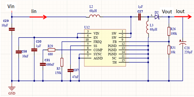 我們的第二個(gè)示例更為復(fù)雜:開關(guān)穩(wěn)壓器。如圖5所示的降壓-升壓轉(zhuǎn)換器是一個(gè)電壓和電流都變化的系統(tǒng)。在此示例中,輸入電壓范圍為10V20V,輸入電流也不明,因?yàn)樗踩Q于輸入電壓,設(shè)計(jì)輸出電壓固定為13.5V,所需的輸出負(fù)載電流為80mA。