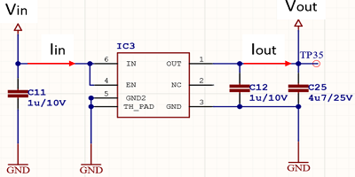 第一個(gè)示例很簡單,但適用于所有電子工程師:LDO穩(wěn)壓器。這些調(diào)節(jié)器的模型類似于圖3。我們還可以快速確定輸入電流和輸出電流幾乎相同,但是輸入和輸出之間的電壓不同。對(duì)于非常小的電流消耗系統(tǒng),LDO的靜態(tài)電流變得很重要,但是如果輸出電流比靜態(tài)電流大得多,我們可以忽略它。
