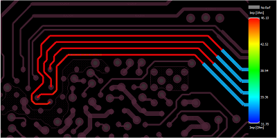 要檢查阻抗變化,請?jiān)诜治龉ぞ邫谥羞x擇阻抗工作流程選項(xiàng)。選擇相同的網(wǎng)絡(luò)以分析并運(yùn)行仿真??梢酝ㄟ^選擇阻抗視覺選項(xiàng)來查看整個(gè)互連的阻抗,該選項(xiàng)將再次顯示帶有顏色編碼阻抗值的熱圖。