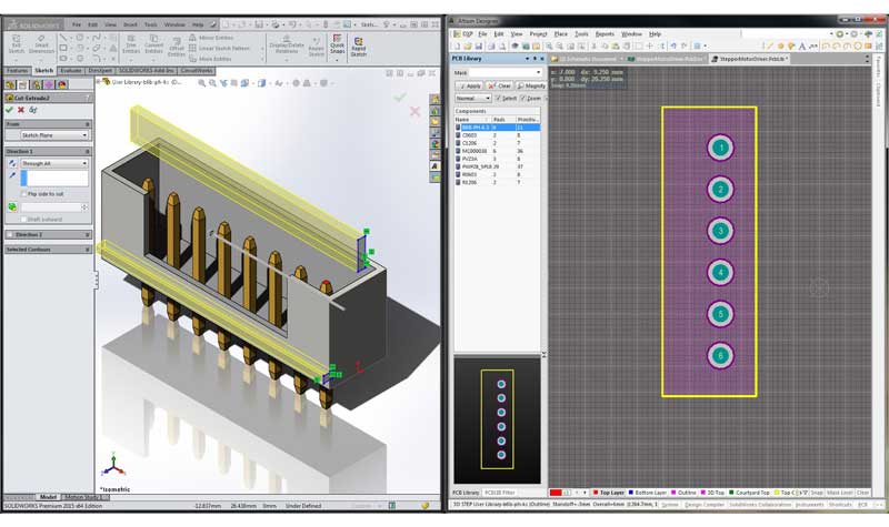 圖3.此處,在MCAD和ECAD設(shè)計(jì)環(huán)境中顯示了相同的組件。(點(diǎn)擊圖片放大。)
