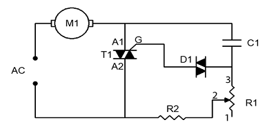 單相交流電動(dòng)機(jī)的速度控制電路。三相電動(dòng)機(jī)可以構(gòu)建類似的電路